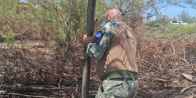 Durante a vistoria, as equipes constataram parcelamento irregular do solo, supressão e queima de vegetação nativa, cercamento irregular utilizando árvores da própria área e quatro sapatas de concreto armado, caracterizando início de construção sem licença ambiental. No total, foram identificadas 11 árvores cortadas e queimadas. No local, a equipe também controlou um início de incêndio, evitando que o fogo se espalhasse.